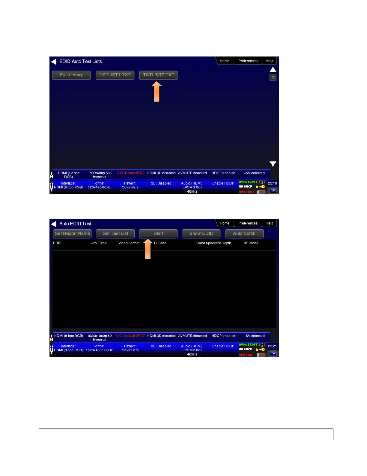 6. Select the desired EDID test list as shown in the screen above.