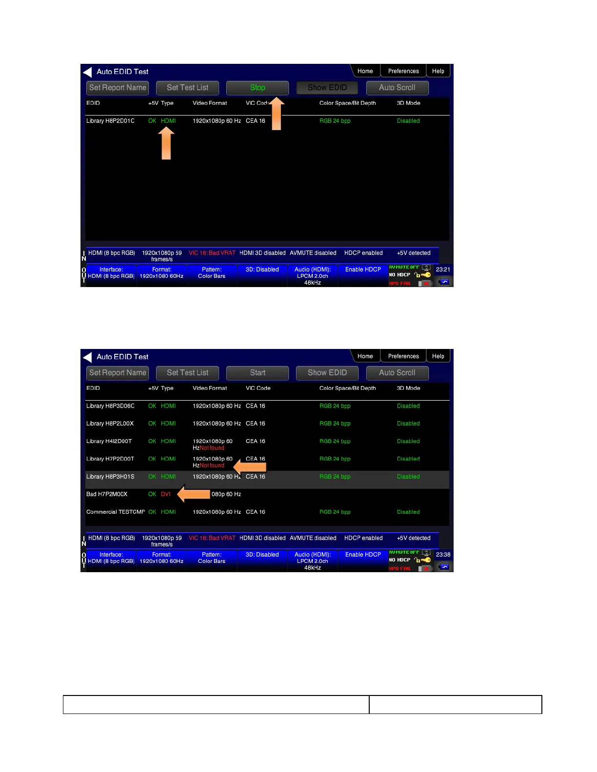The test will begin executing and you will see the results one by one as each EDID it tested. The following