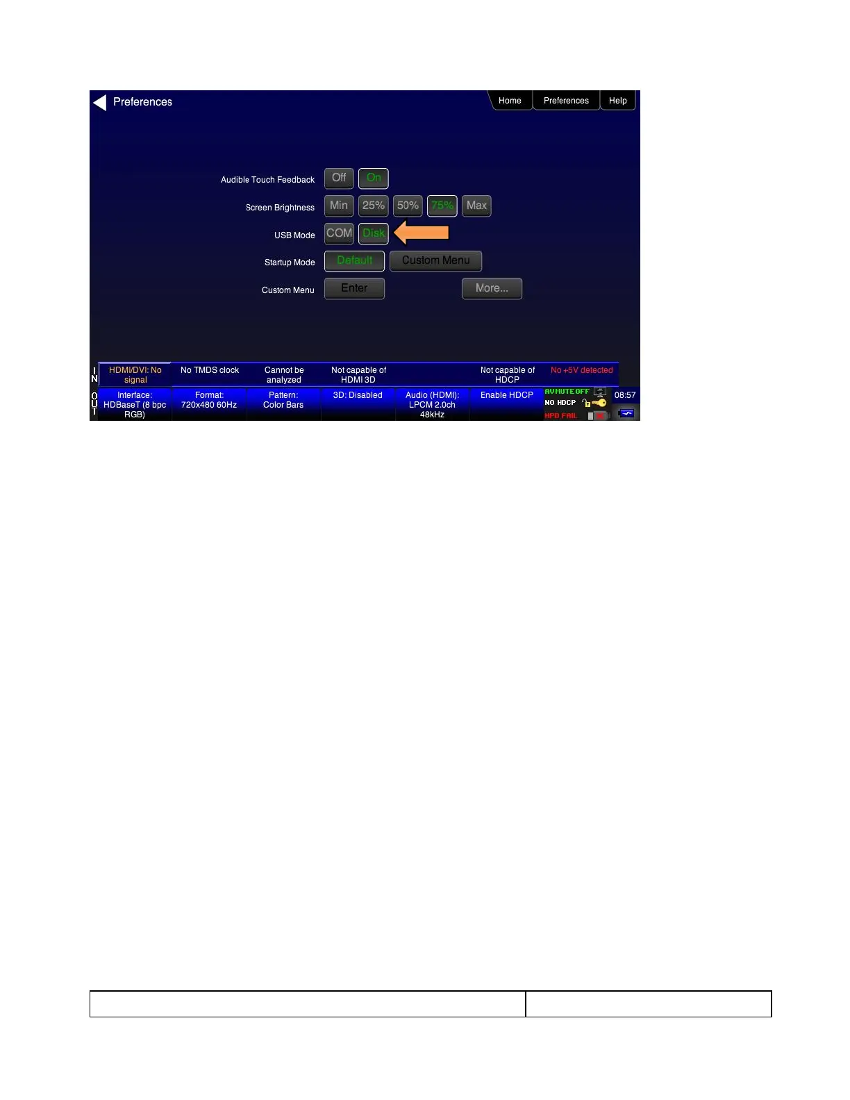 The Disk selection for USB Mode in the above screen will be highlighted in green.