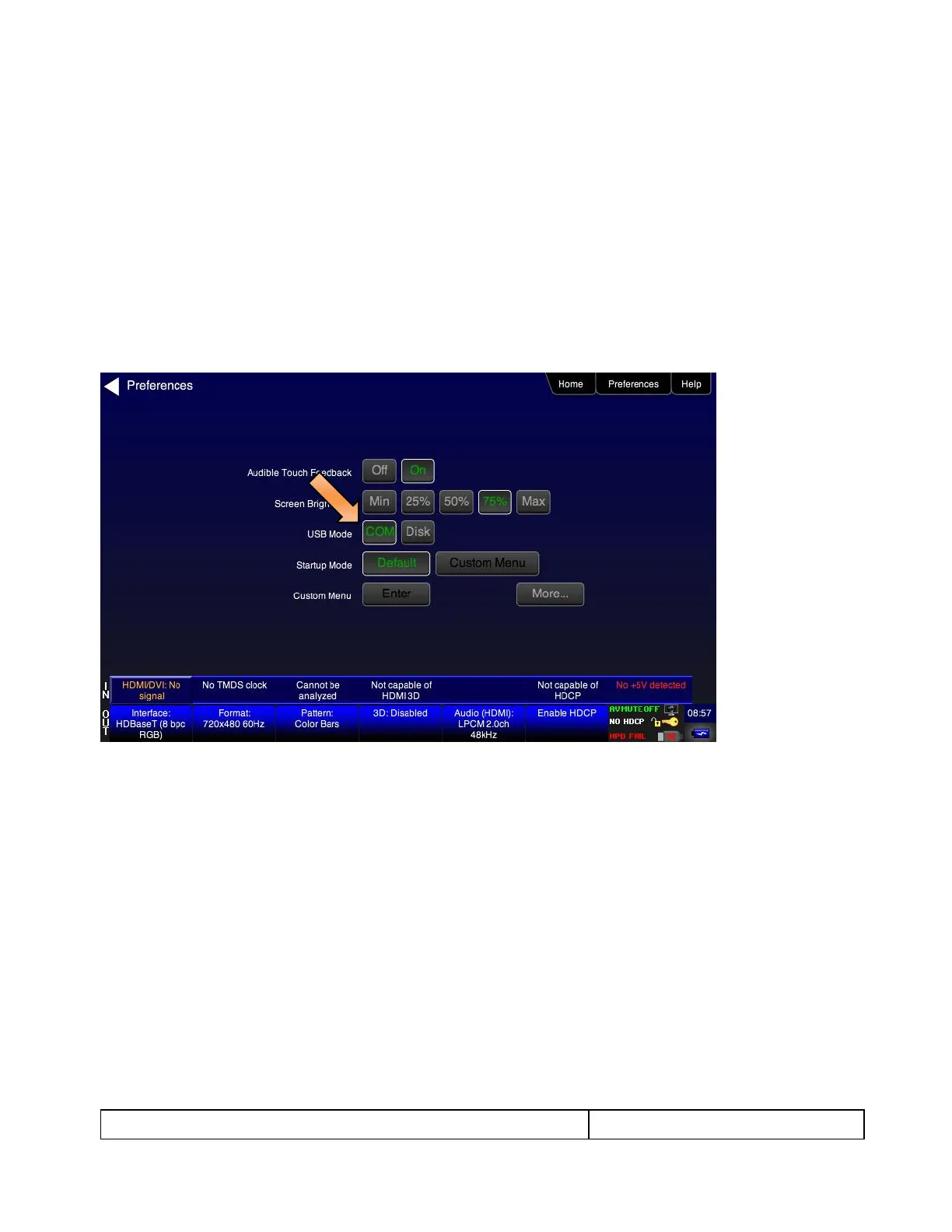 8. Touch select COM for the USB Mode (refer to the screen above).