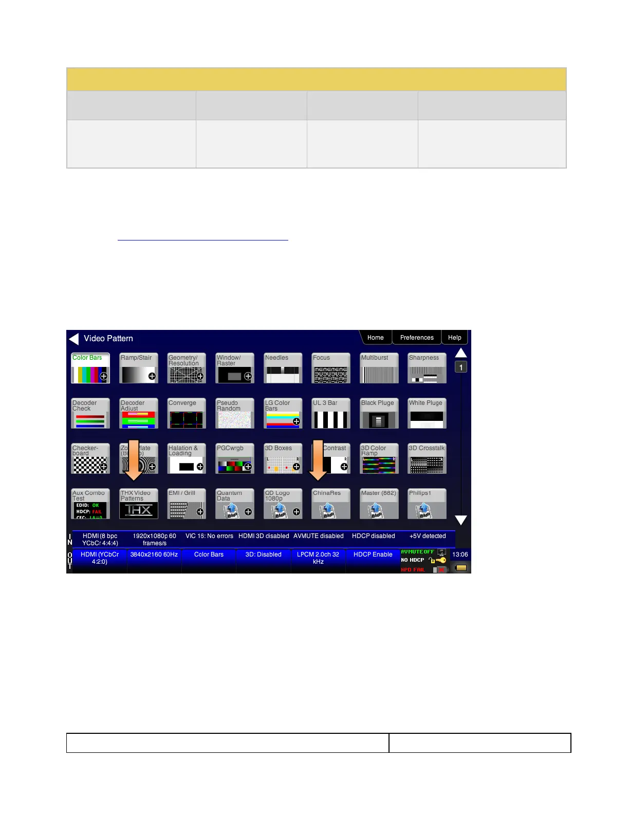 screen is shown below (Philips1, ChinaRes, Master). You simply select one of the test patterns (e.g. ChinaRes