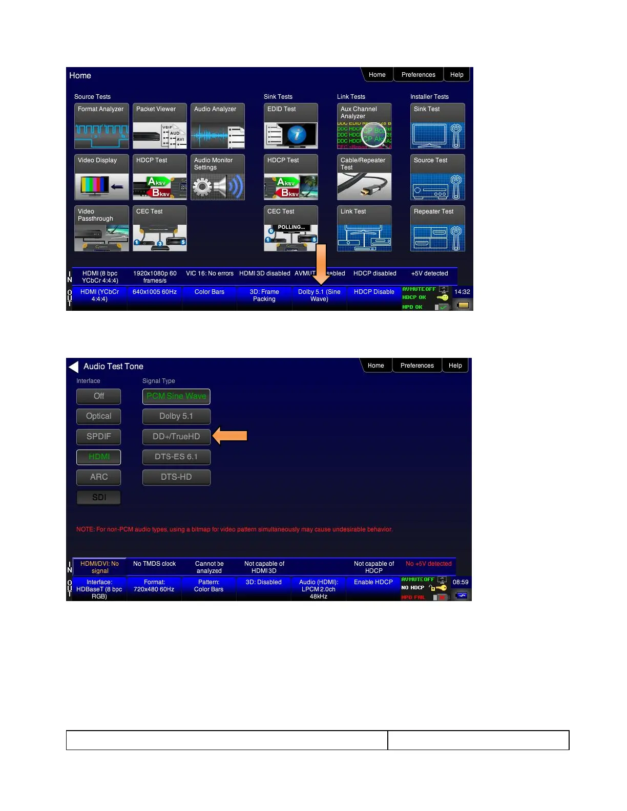 4. Enable the digital audio interface (HDMI, HDBaseT, SDI, TOSLInk, SPDIF). Refer to the screen examples