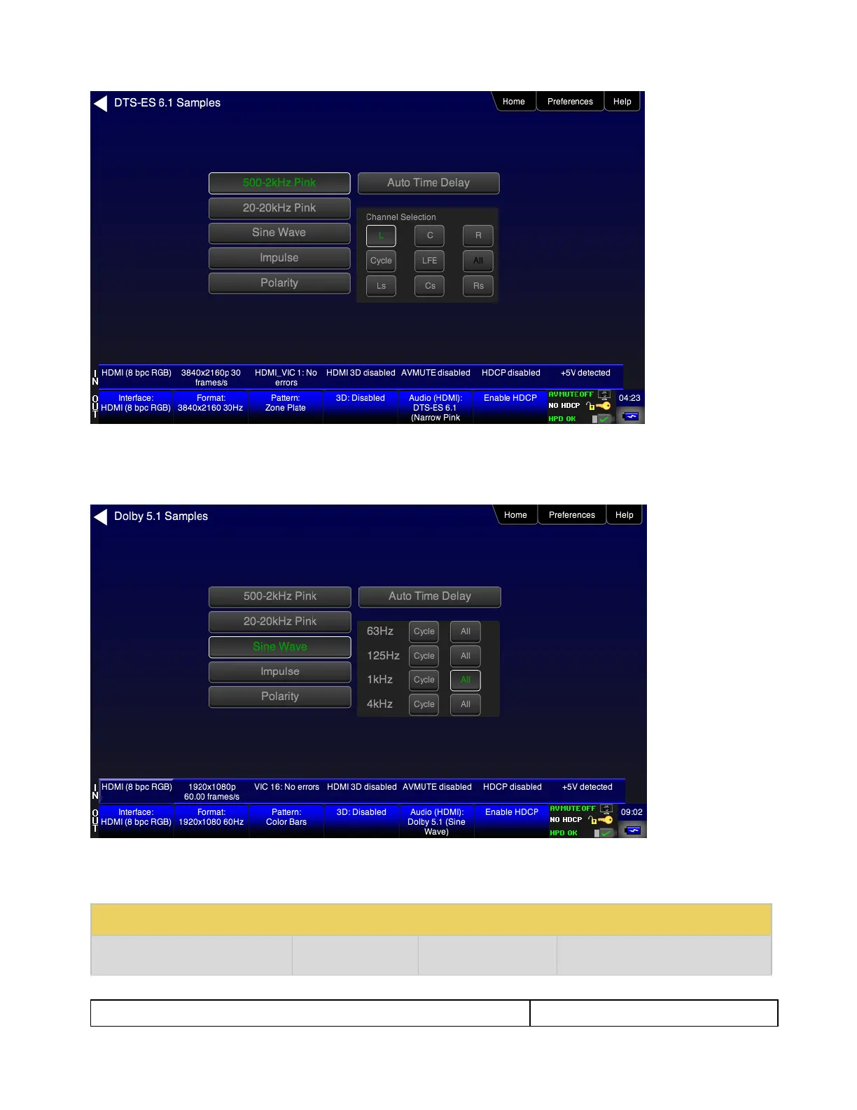 Note: When selecting Sine Wave at 1kHz or 4kHz the 780 will output 5.0 audio. This is because the subwoofer