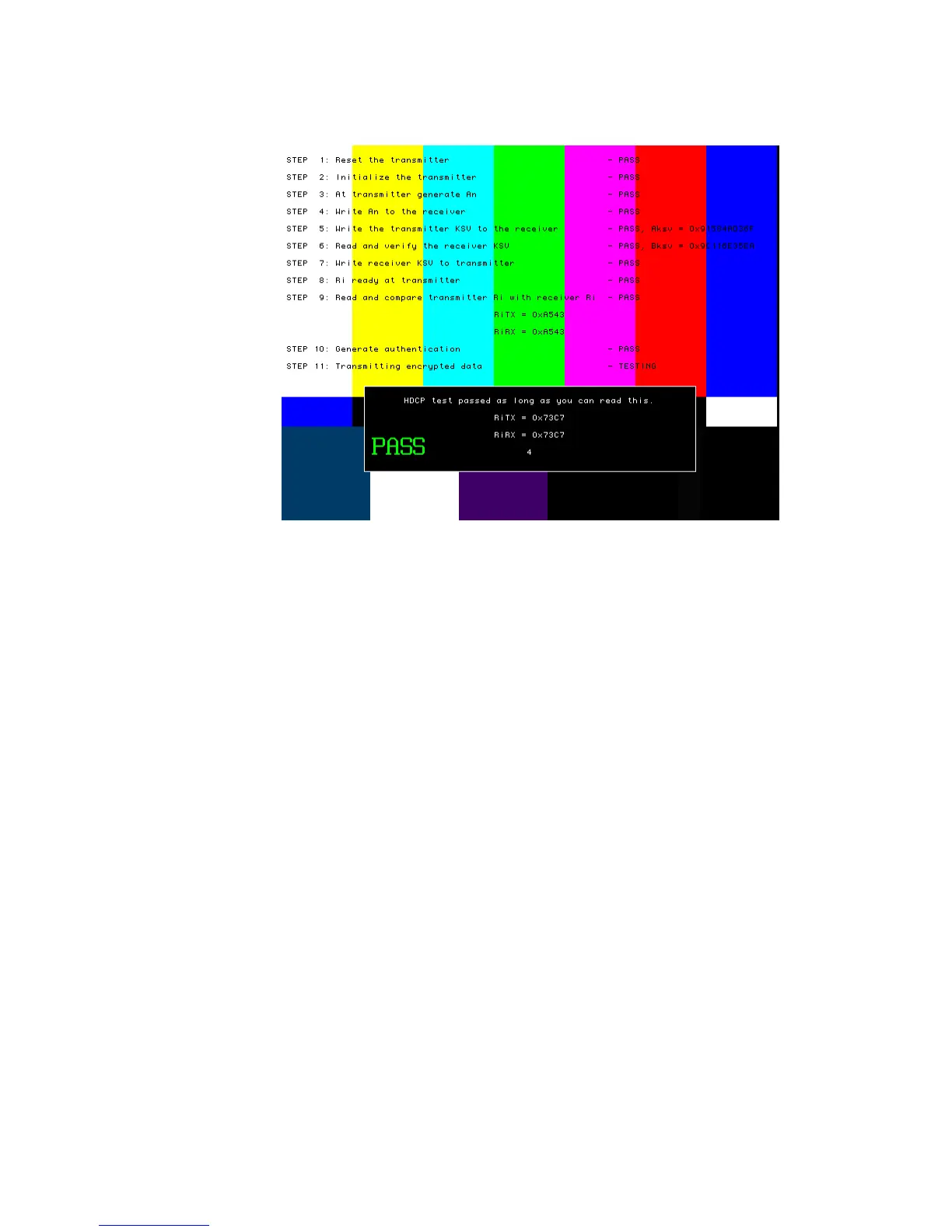 The image will indicate if the test passed or failed. If the test fails, see “Troubleshooting