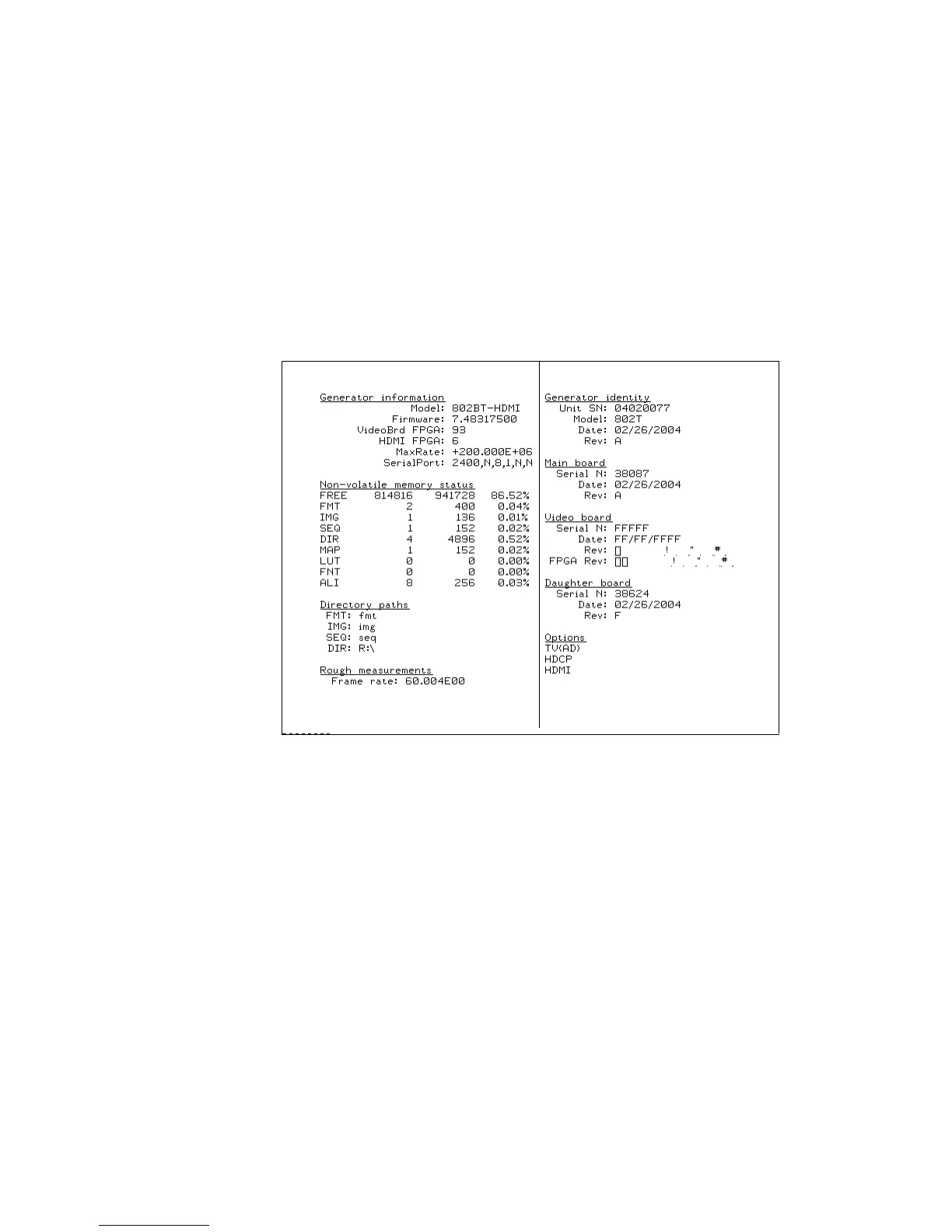 Use the GenStats image to display information about the generator, including revision