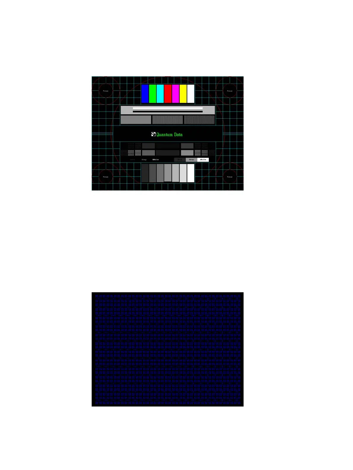 Description In the primary version, the screen is filled with blue (BLU and B), green (GRN and G), red