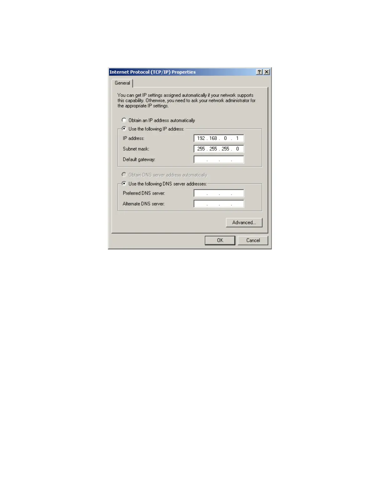 4. In the Internet Protocol (TCP/IP) Properties dialog box, select Use the following IP