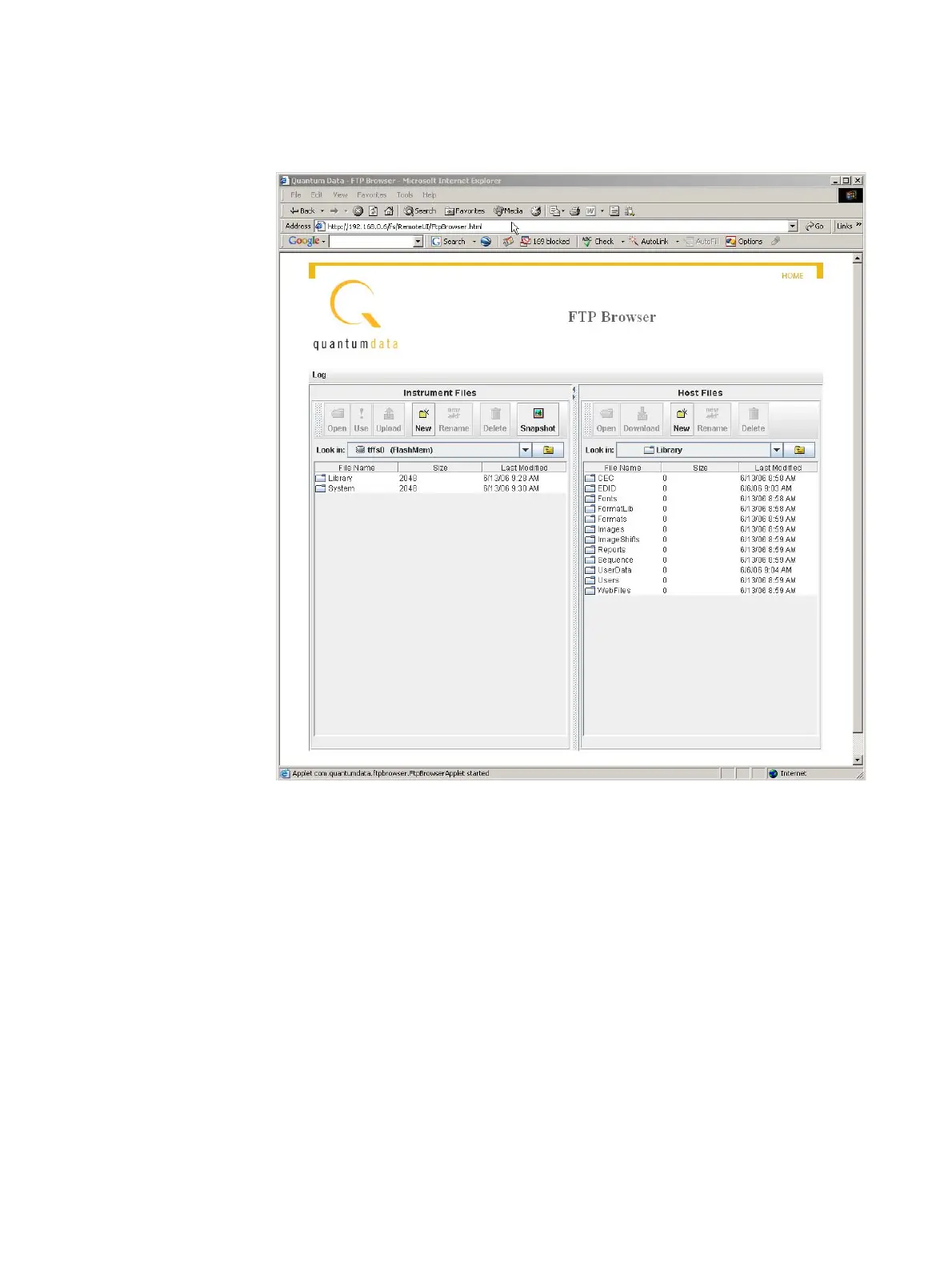 a. In the Instrument Files area of the Generator FTP Browser window, click the down
