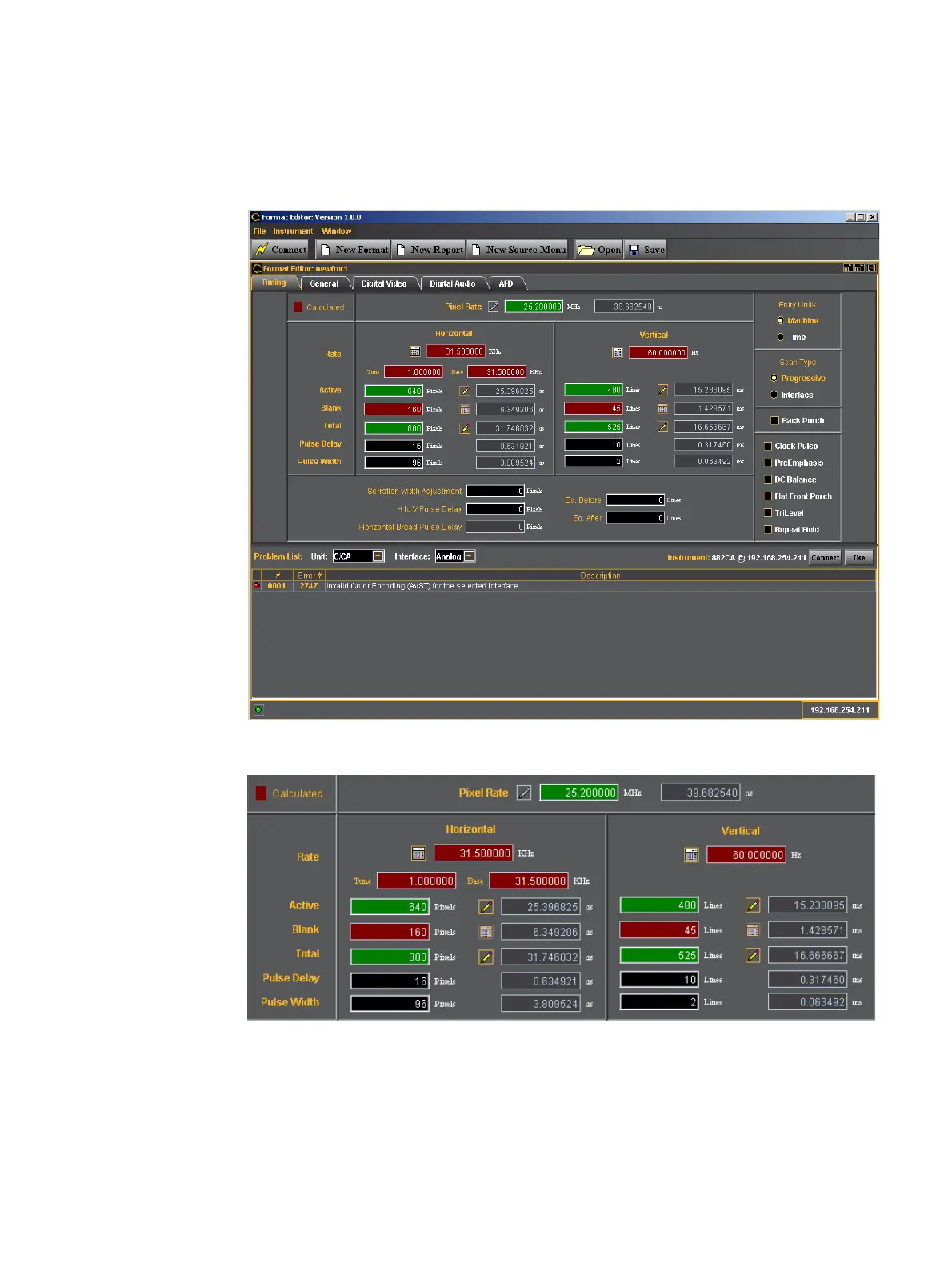 The Timing window of the Format Editor Timing is shown below. This window is activated