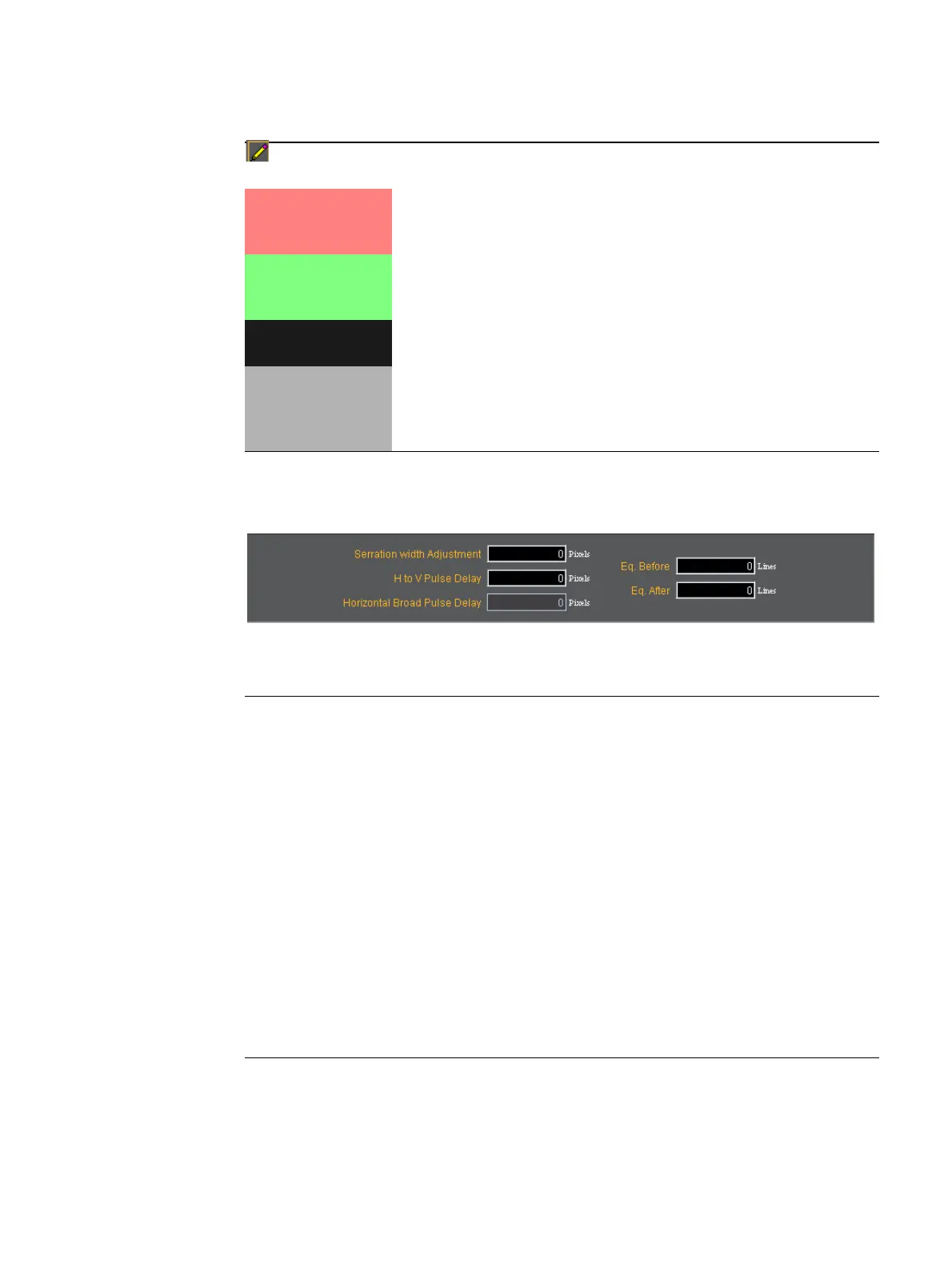H to V Delay Displays the current value for the pixel delay between horizontal and vertical