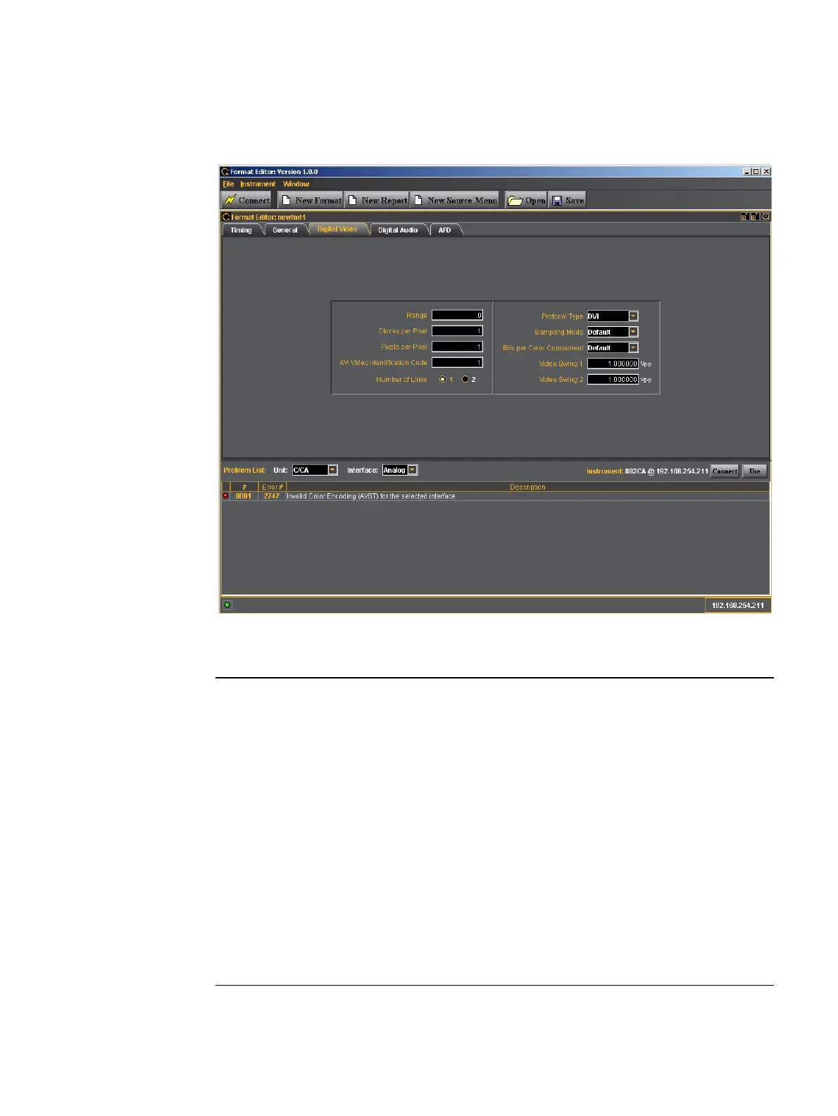 The Format Editor Digital Video tab is shown below.