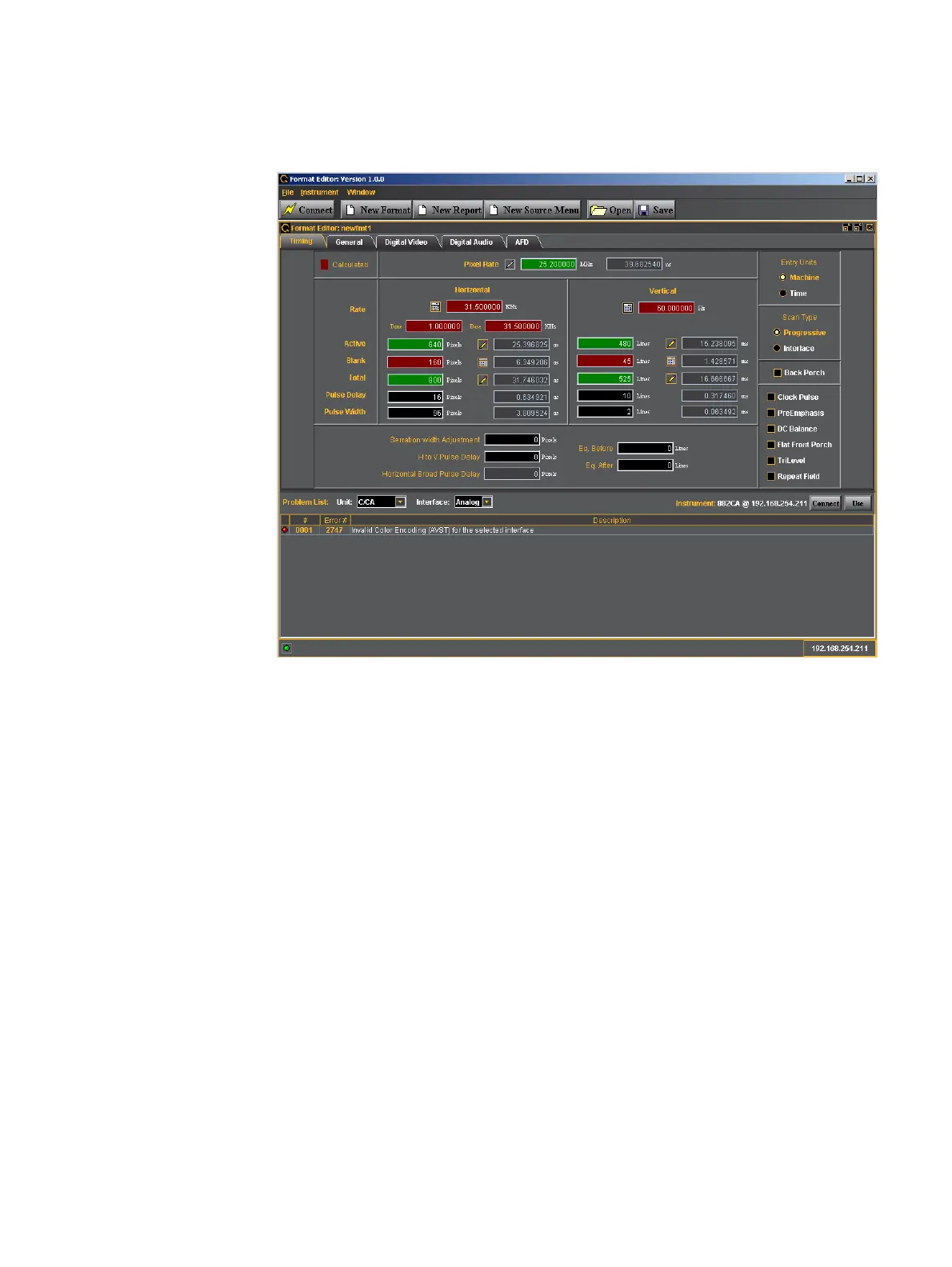 3. Click New Format. The Timing tab of the format definition page appears as shown