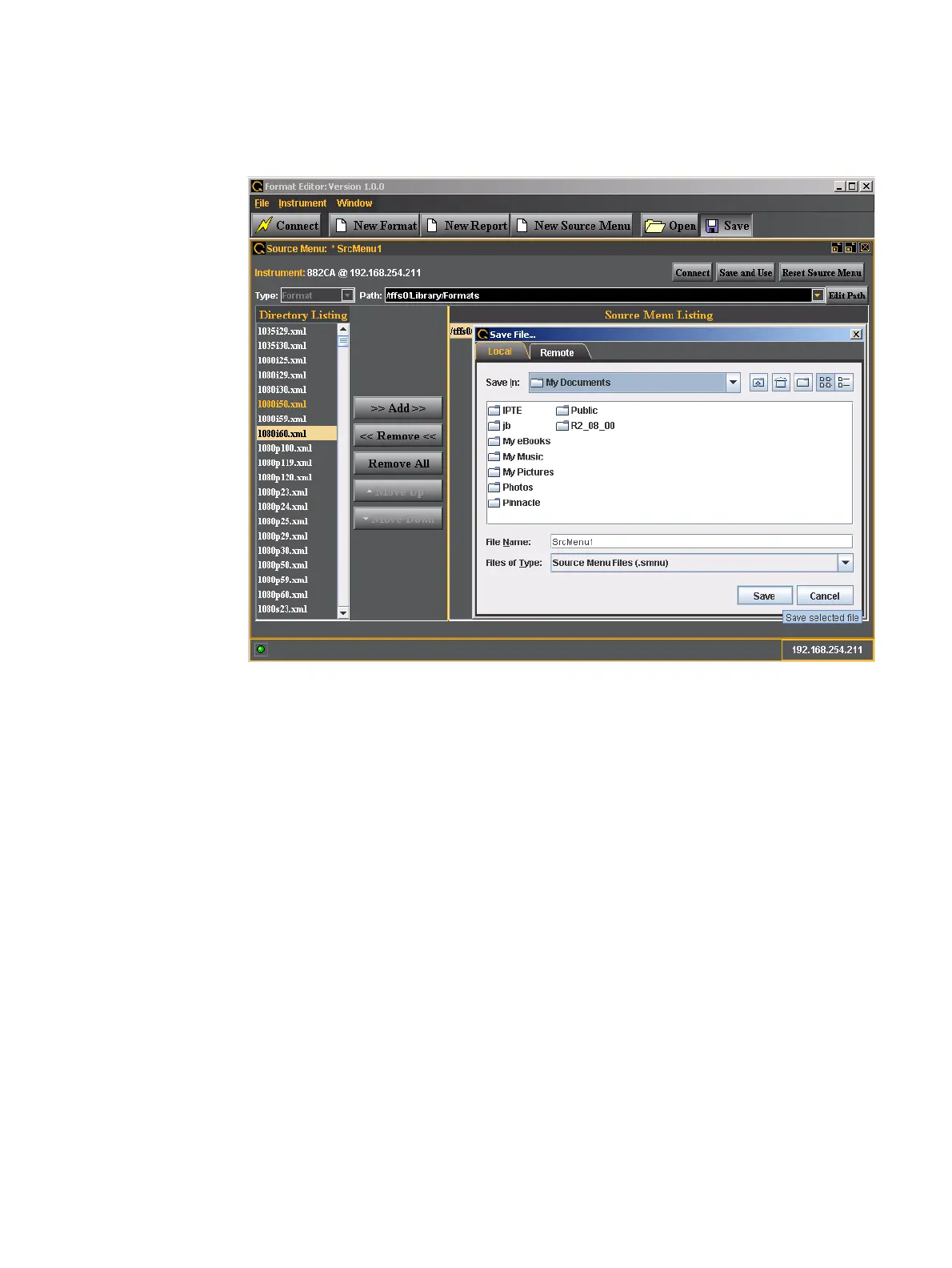 Note: It is recommended that you save custom formats in a directory on the PCcard