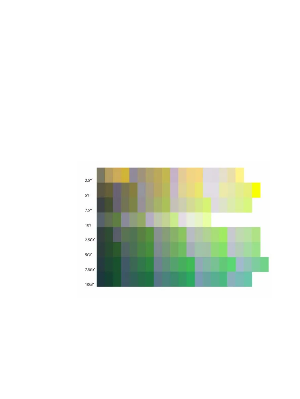 into the adjacent hues. Each such sub image depicts the chroma and value variances of
