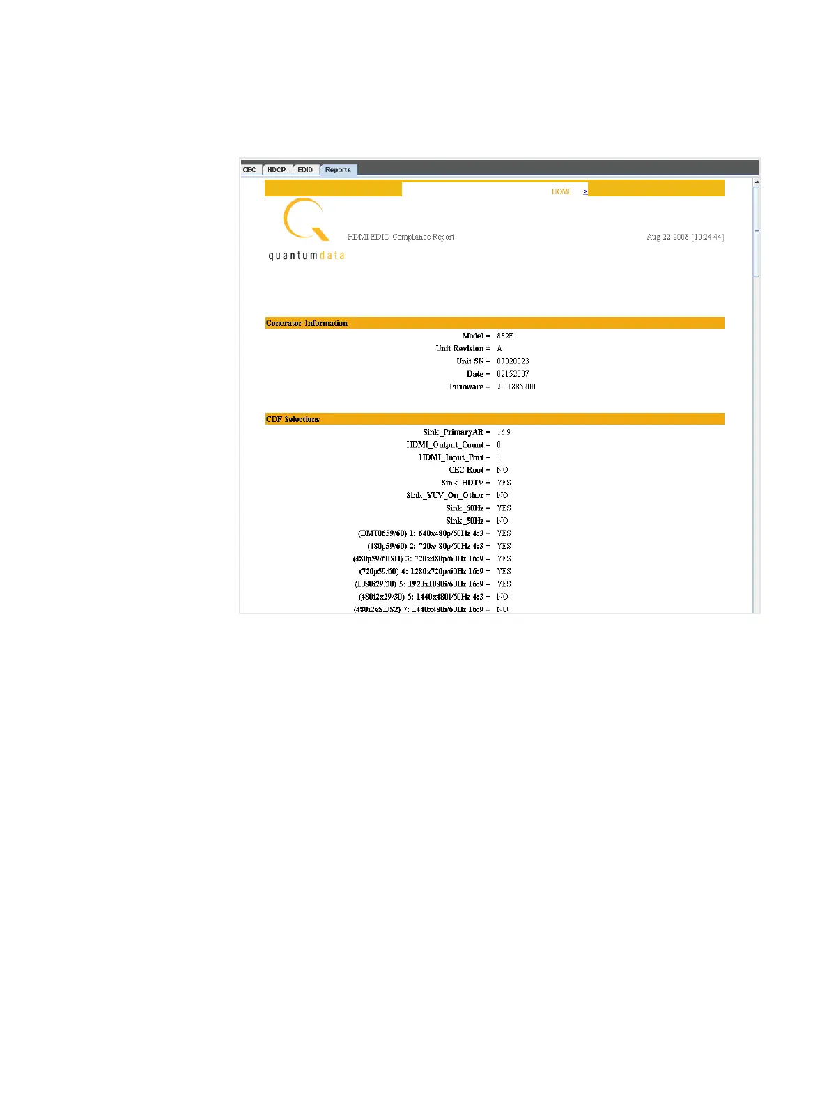 9. Click on the EDID Compliance report you wish to view.