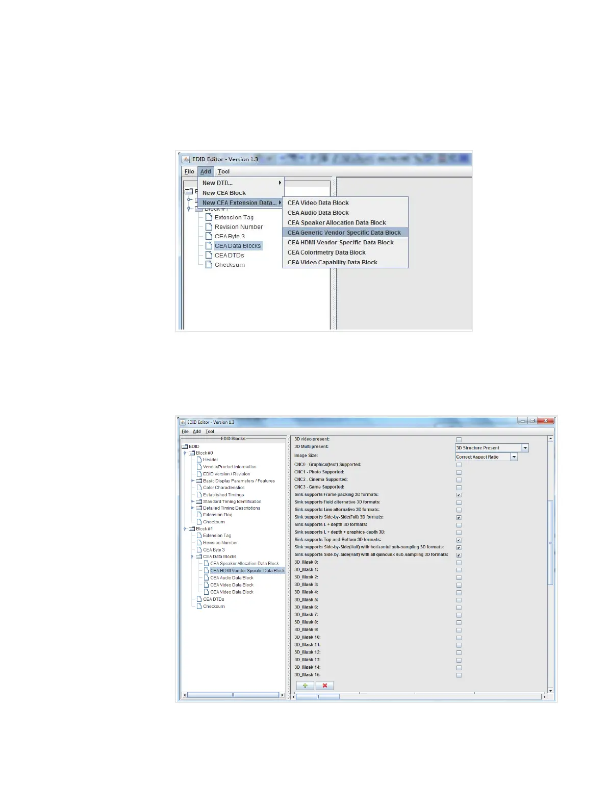 a. Highlight the CEA Data block where you want to add the Vendor Specific Data