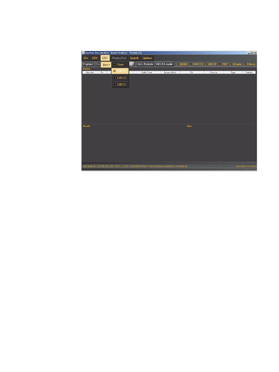 3. Select the CEC core from the CEC pull-down menu. Send some CEC messages either