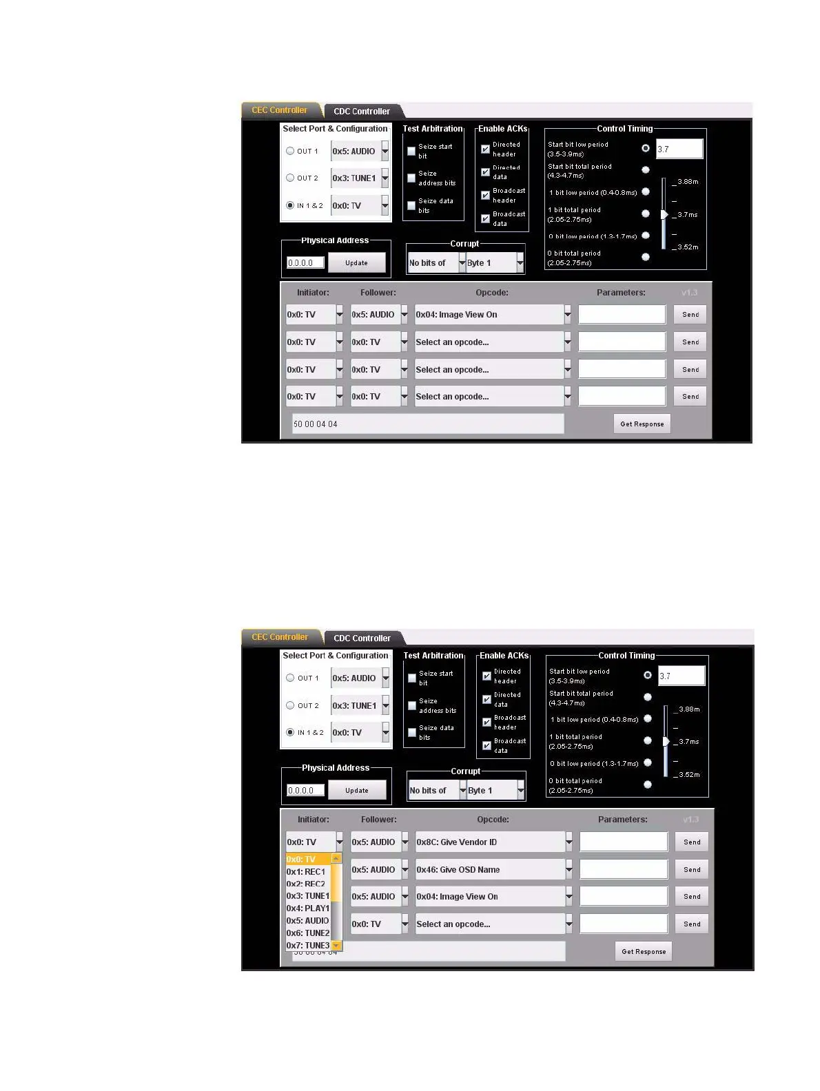 Select Port & Configuration area of the CEC/CDC Controller screen. This is the port