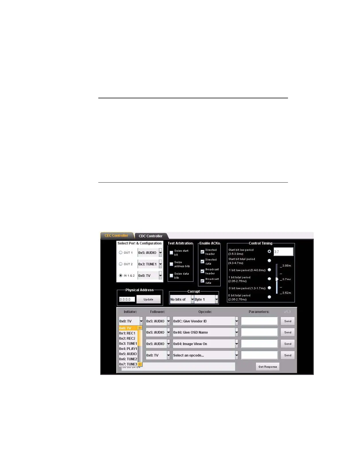 2. Select the command that you wish to send from the Opcode pull down select box.