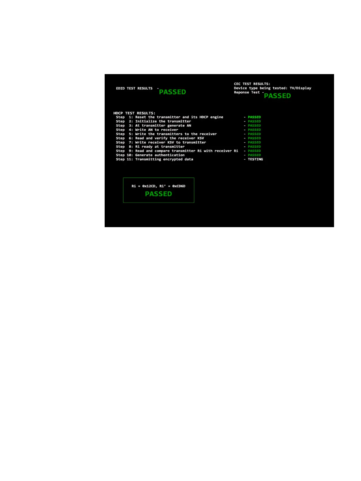 phase of the HDCP authentication. Below that is the ongoing test results of the third