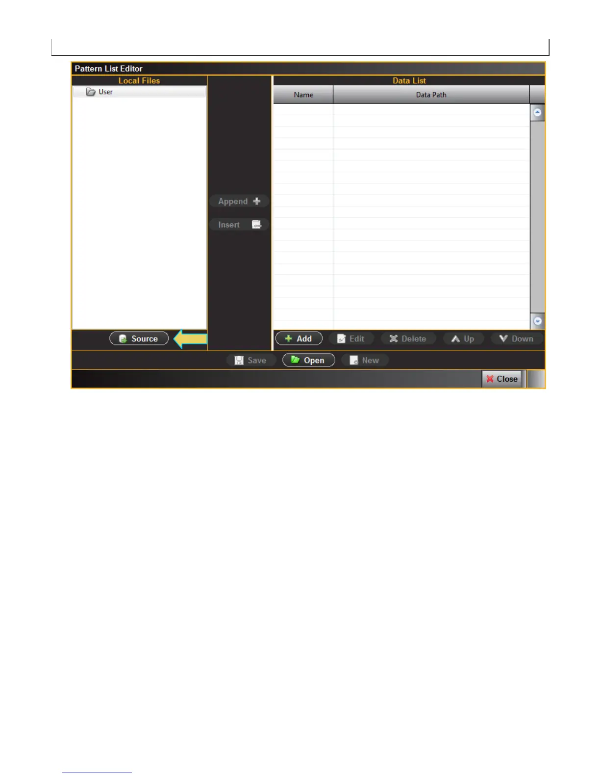 2. Click on the Source button on the lower left under Local Files (indicated in the diagram above). The Data