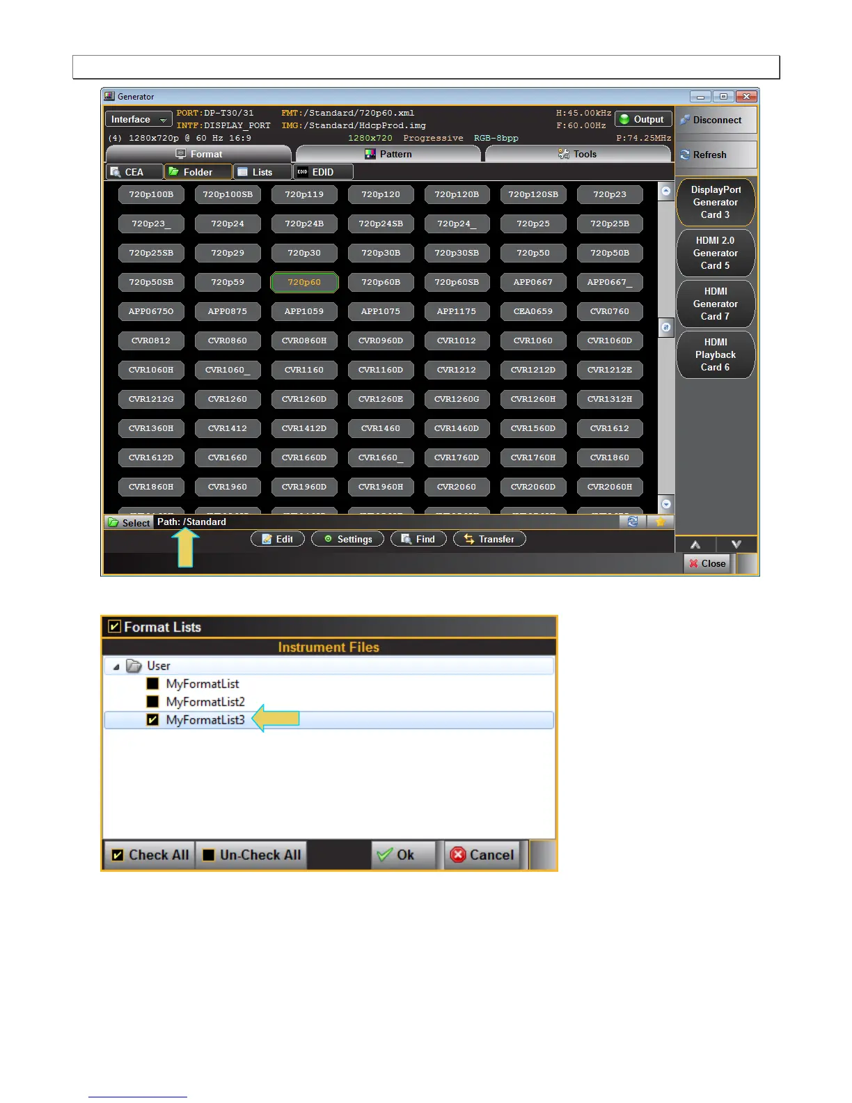2. Select the desired format list.