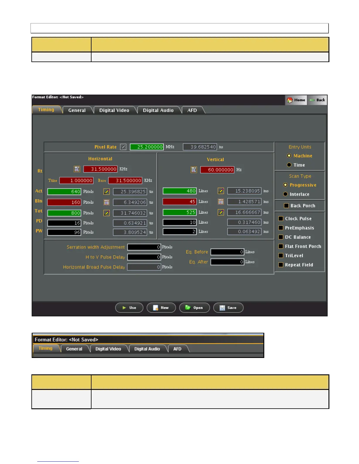 Selecting the Timing tab opens up an application screen that enables you to define the timing parameters for