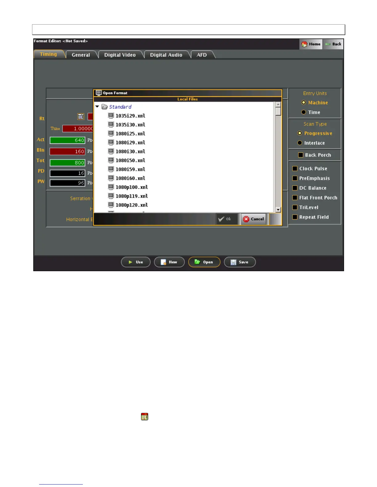 6. The format parameters of the selected format will appear in the new format Timing window as shown below.