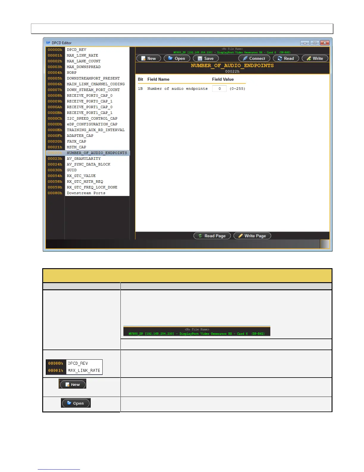There are a set of controls available with the DPCD Editor. These are defined in the table below: