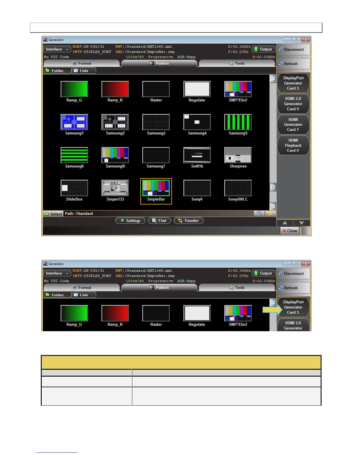 The Generator screen has a status area on the top of its panel. The status area provides the following