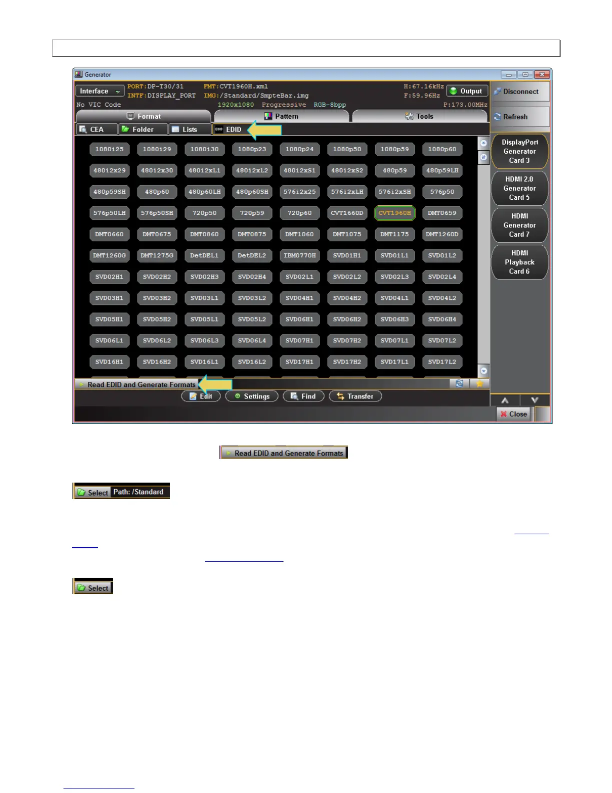 When EDID formats are not active, the directory whose formats are being displayed is listed in the lower panel