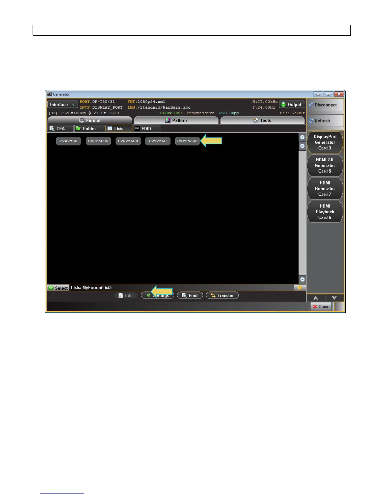 You can select all or one custom Format List any combination if you have several defined. The example above