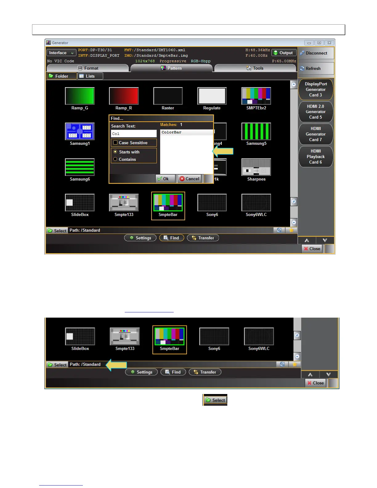 the example below, the path is set to Standard which will display the entire test pattern library and is the default