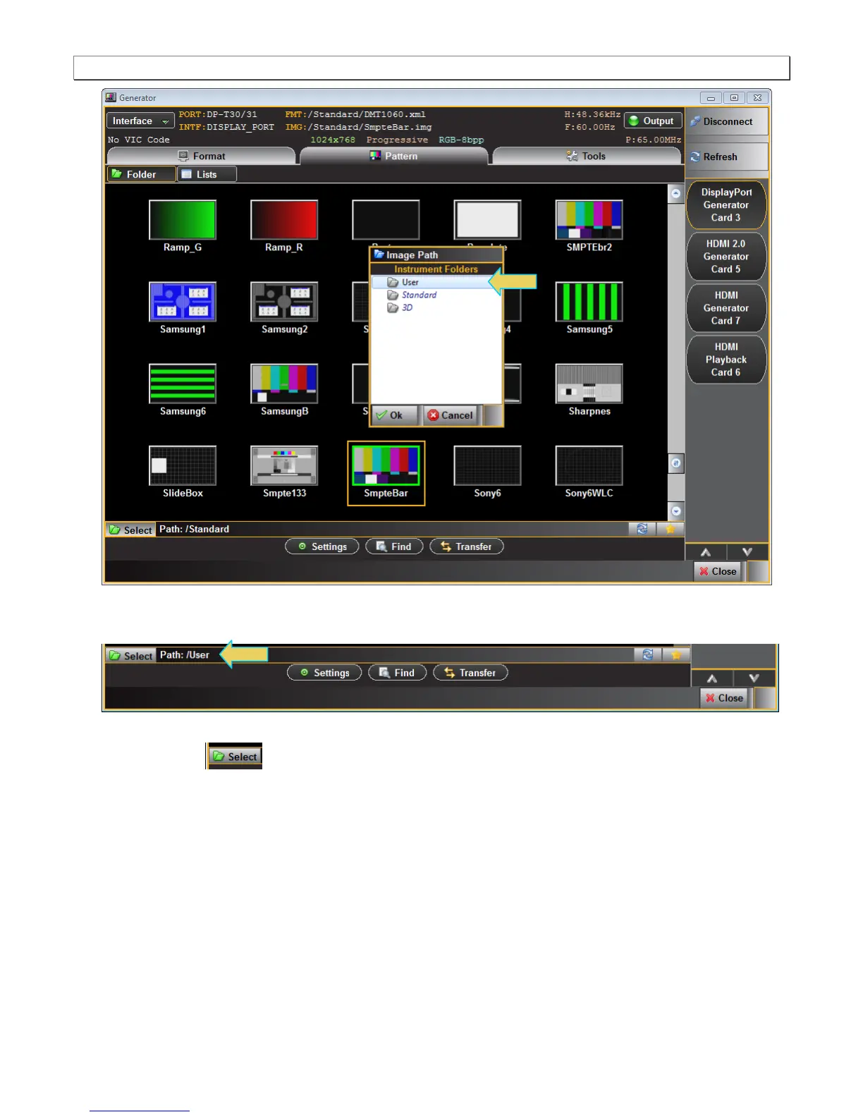 When you have changed the directory the User directory will be indicated on the lower panel beside the