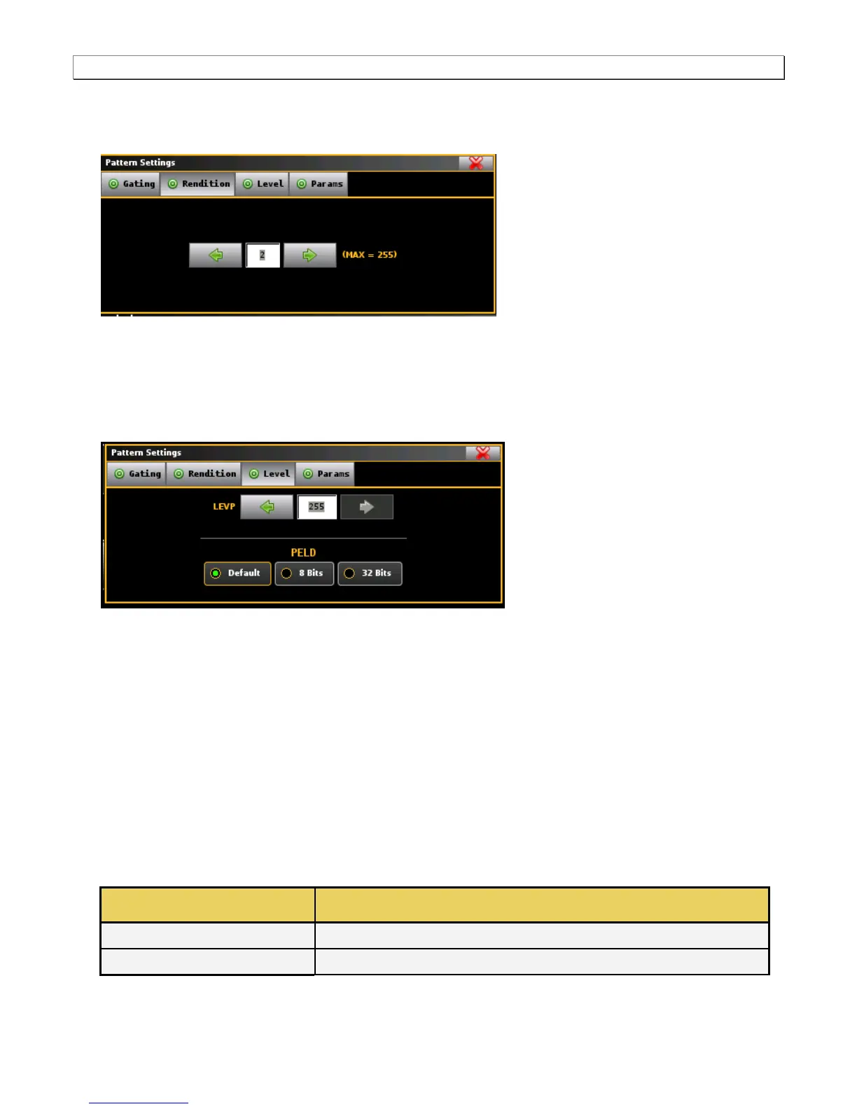 require PELD 32 or look optimal only when PELD is set to 32. The test pattern will indicate when PELD 32