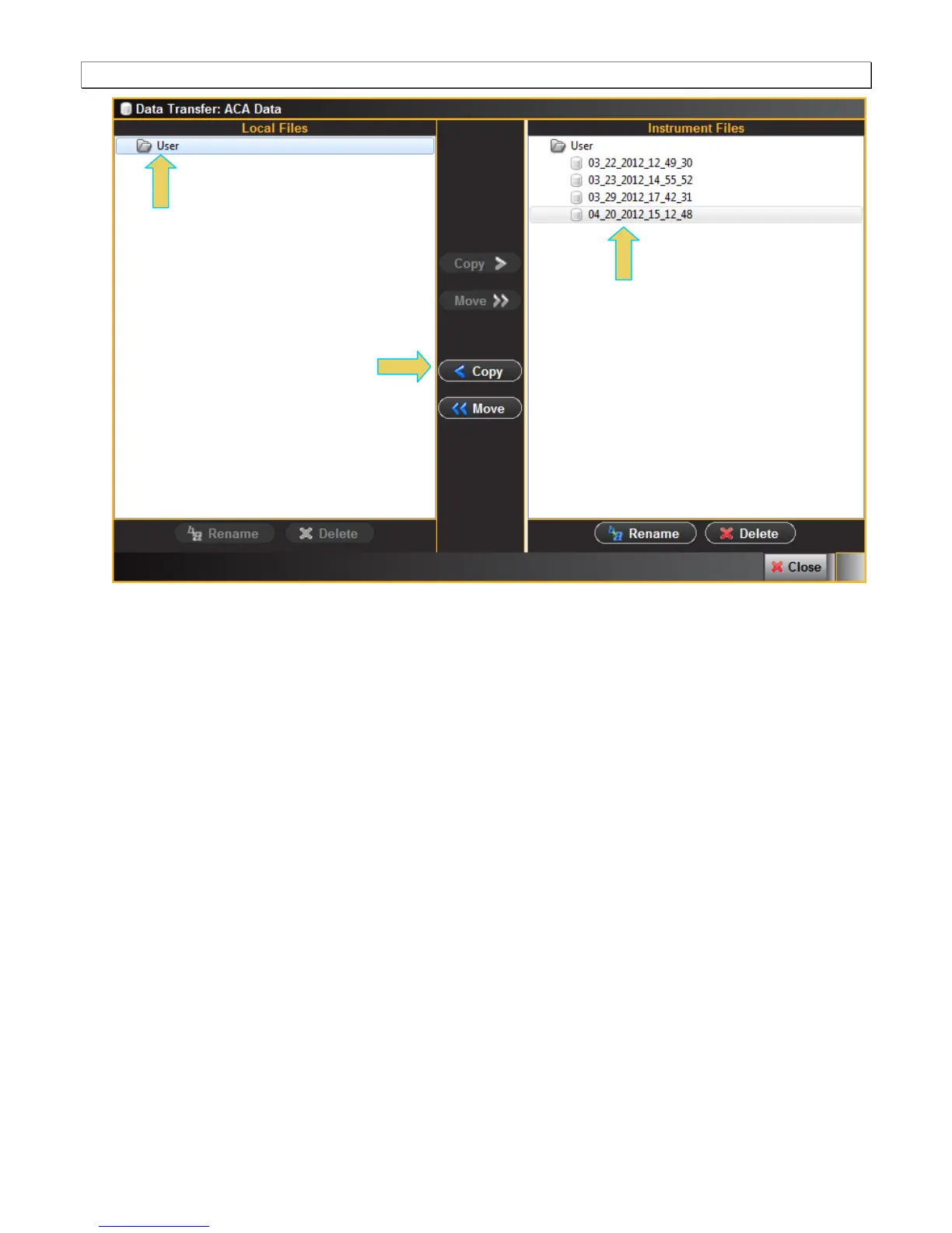 6. Highlight a directory on the Local Files side (host PC) and then initiate a Copy or Move.