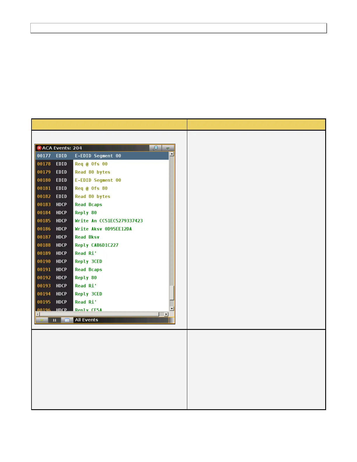 The ACA (Auxiliary Channel Analyzer) enables you to view the DDC traffic for HDMI streams and the C-Bus traffic