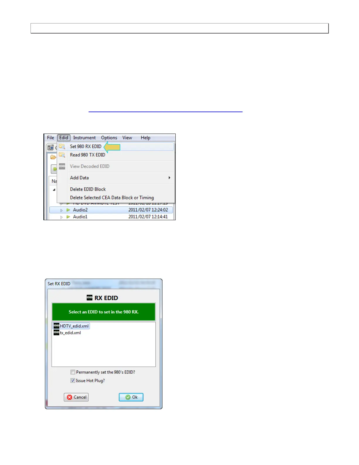 EDIDs to the host PC where the 980 Manager is running. Select an EDID file by activating the Set 980 Rx