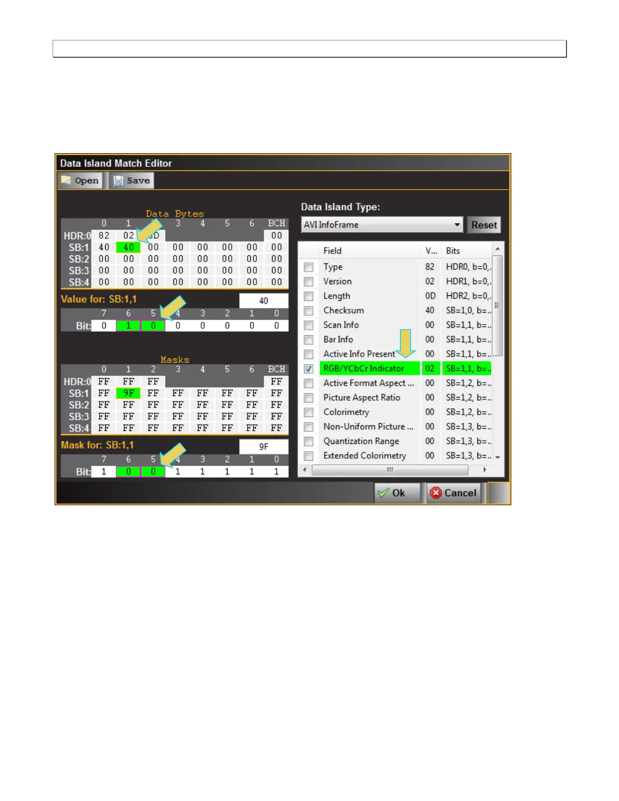 below, RGB/YCbCr Indicator is selected and the mask that applies to those bits, are selected for you. You then