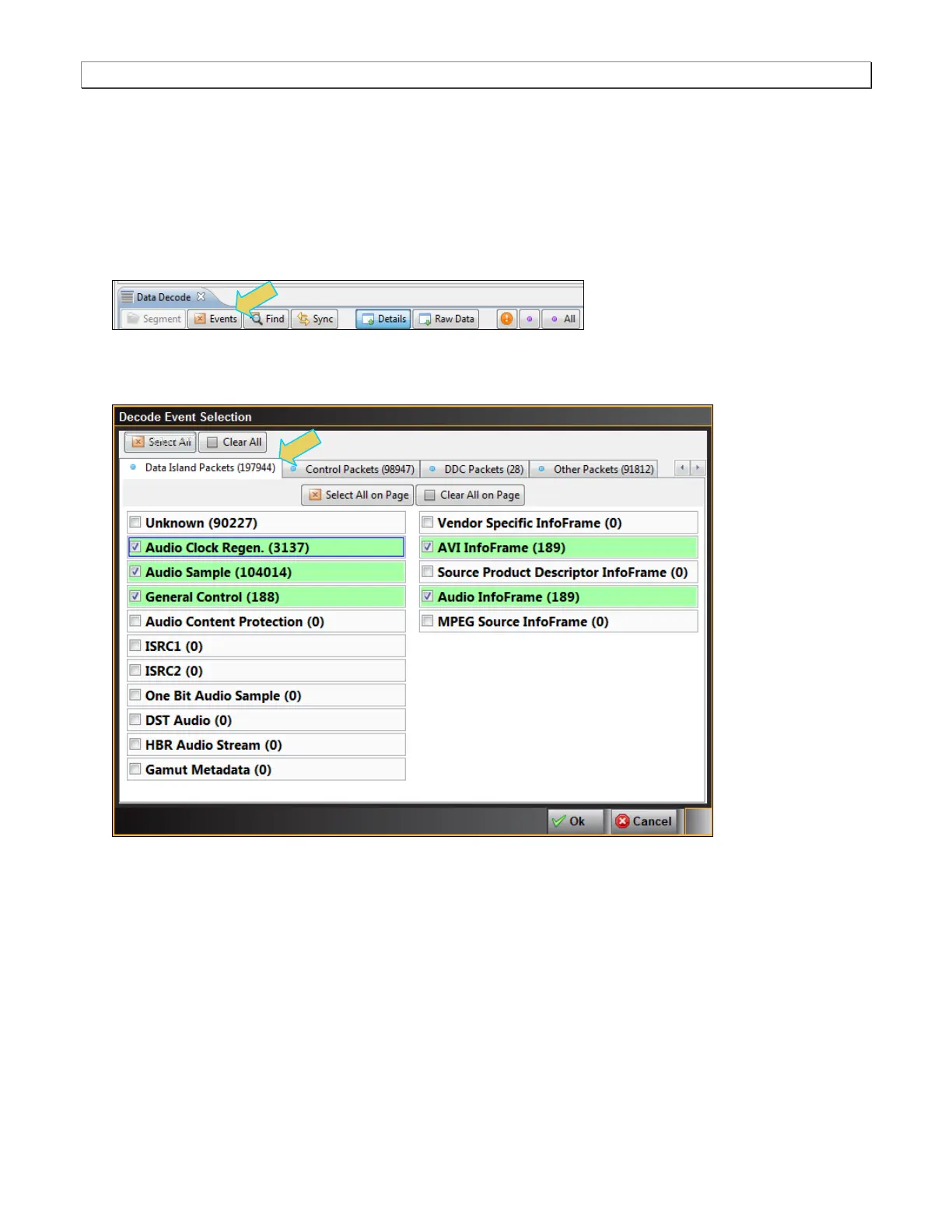 1. From the Data Decode panel, select the Events activation button to access the Decode Event Selection