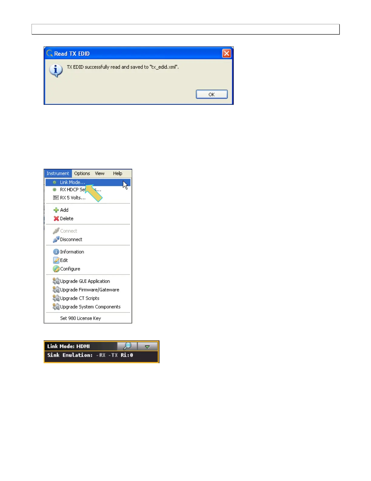 2. Select the Link Mode item from the Instrument pull-down menu on the built-in front panel as shown below.