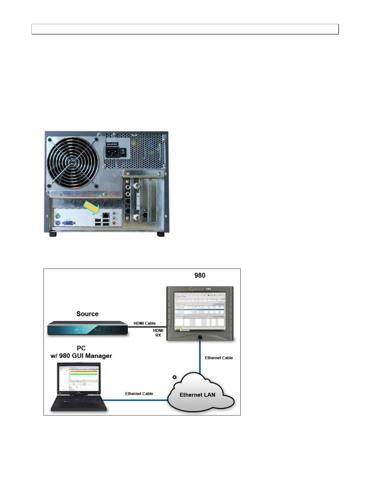 2. Connect an Ethernet cable from your PC hosting the external 980 GUI Manager to your corporate LAN. Refer