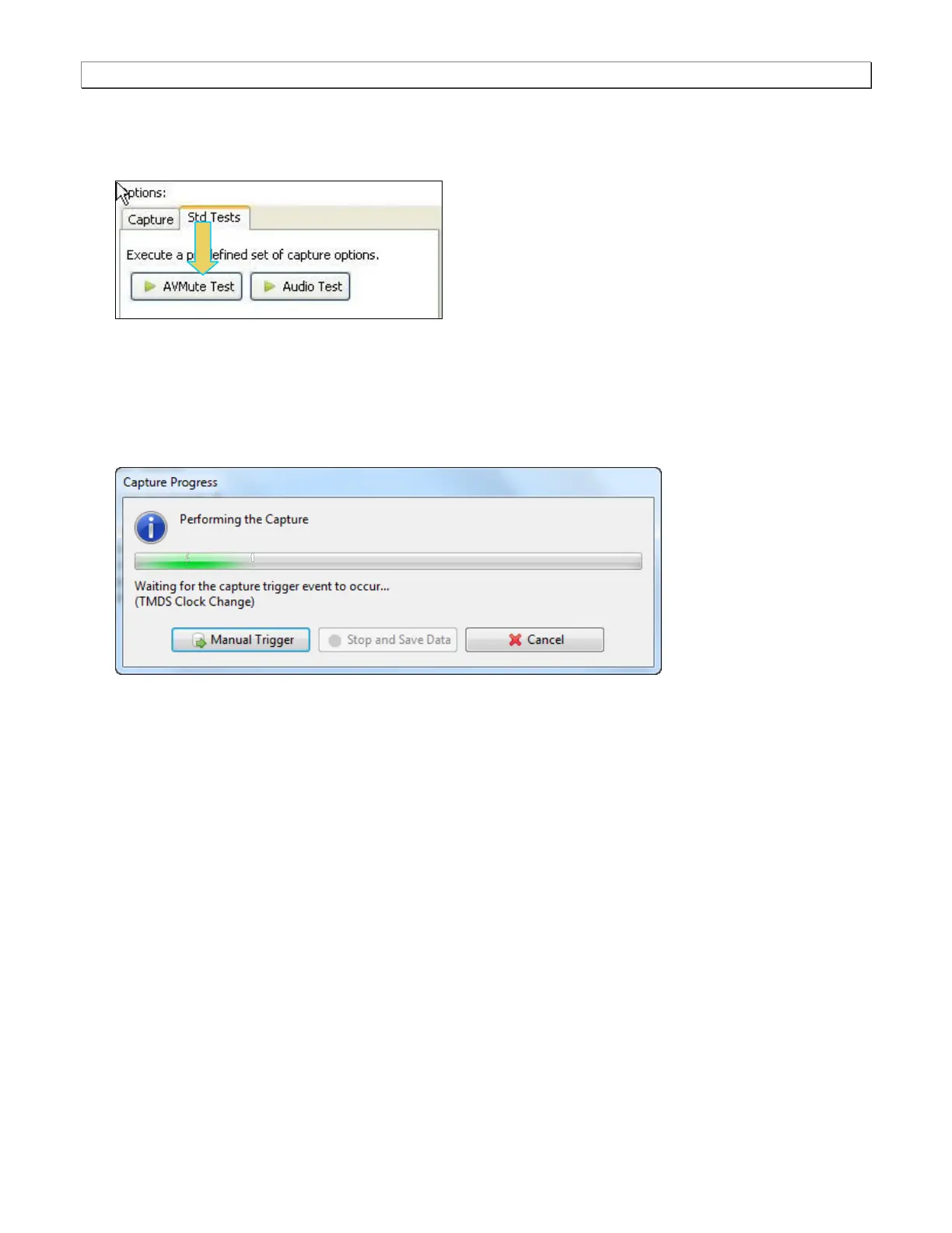 Note: You do not need to set the Trigger Selection when running the AVmute test. The Trigger Selection is