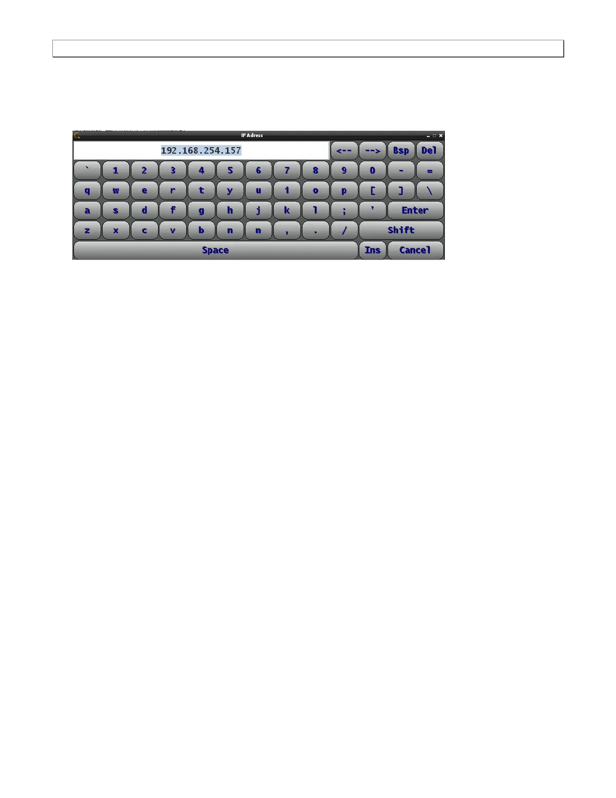 on-line keyboard which enables you to change the IP address. Edit the IP address and press the Enter key on