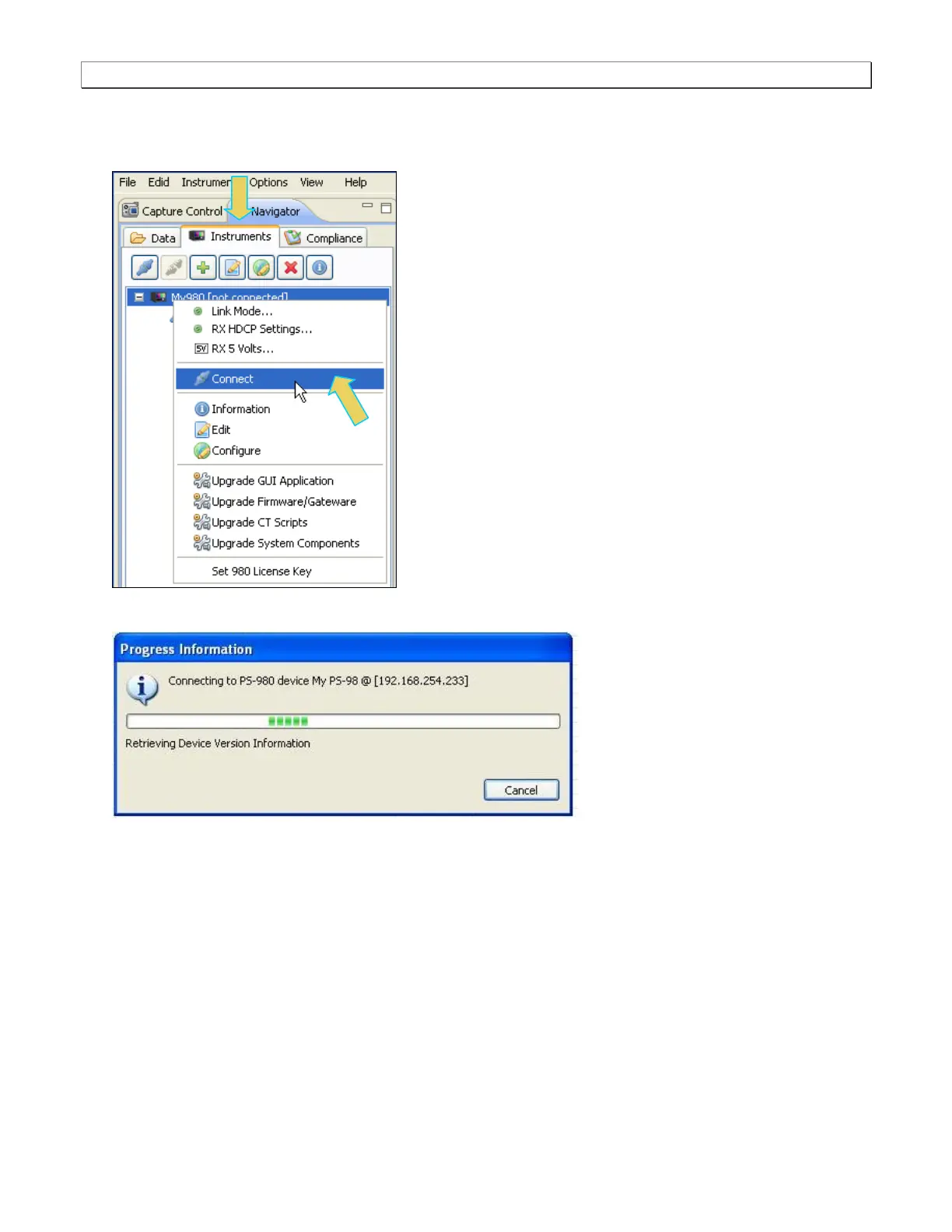 3. (If not already connected) Connect to the 980 Protocol Analyzer using either the Connect icon or the Connect
