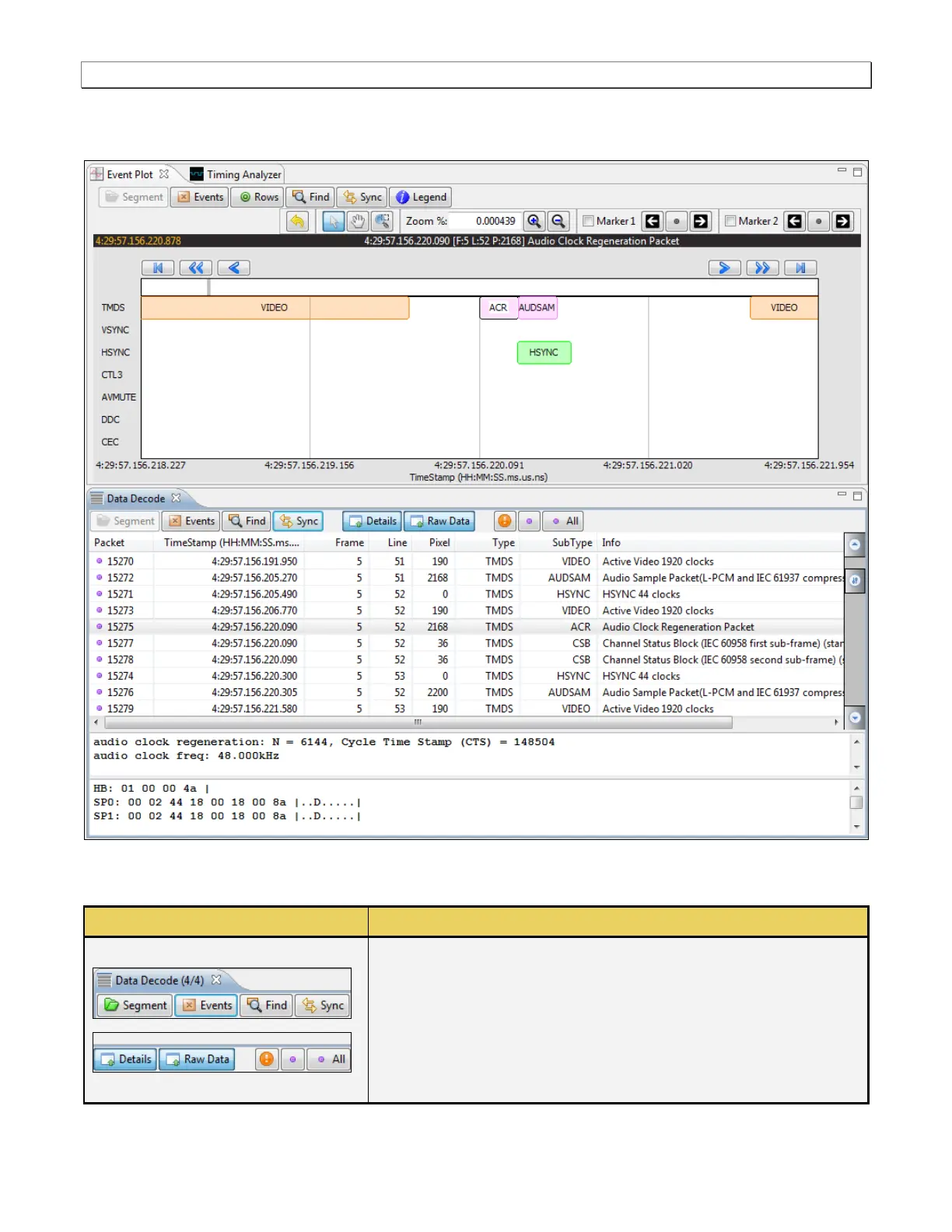 When you select a packet in the Data Decode panel that packet is highlighted in the Event Plot panel. It is only