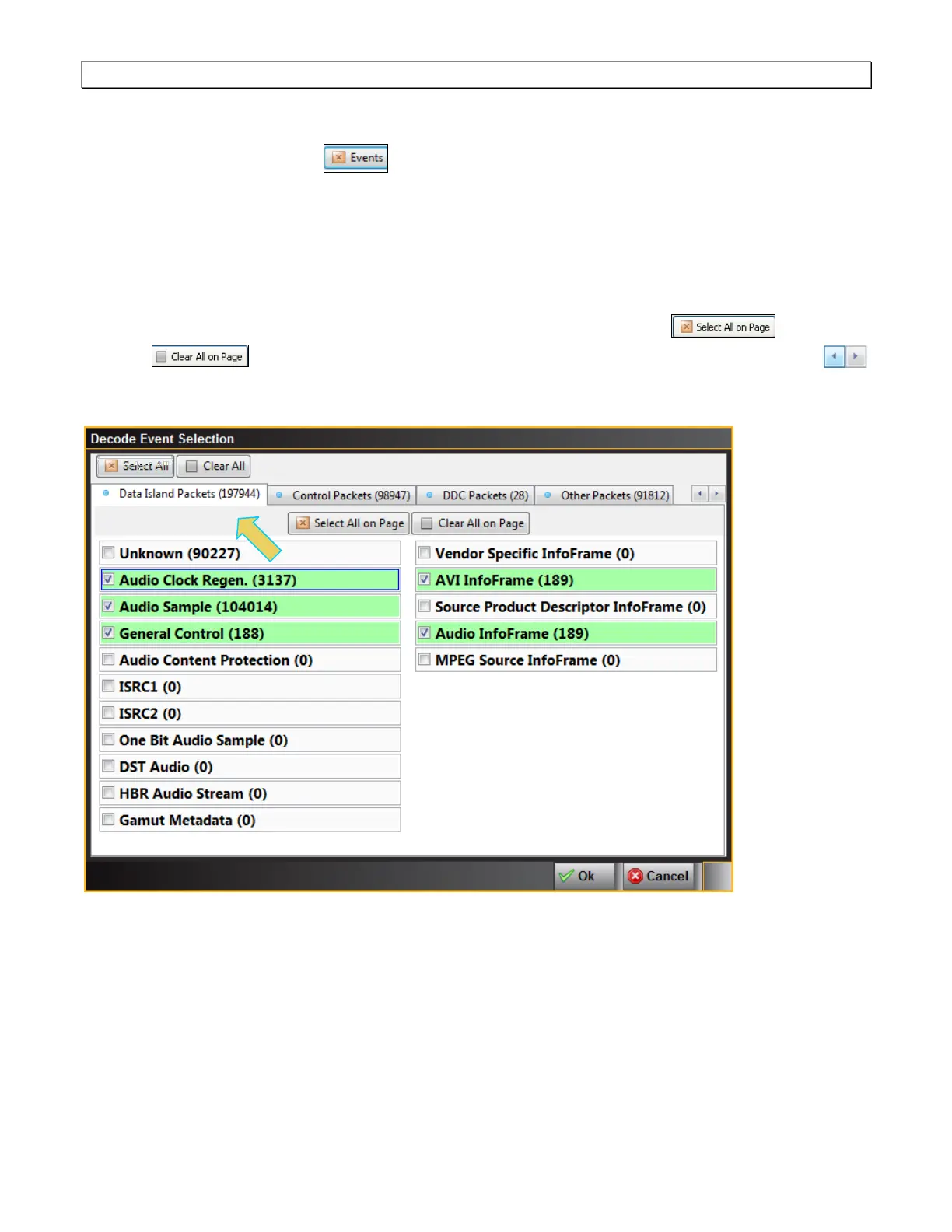 The screens below show the Post-Capture Decode Event Selection panel and its control and selection items. In