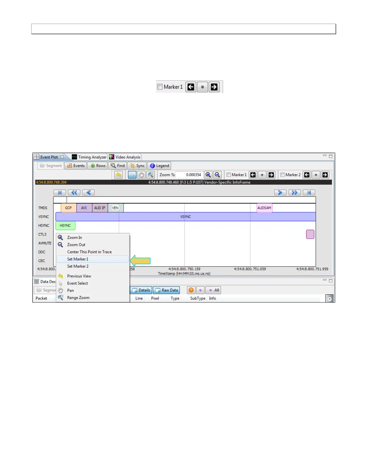 being set and the resulting markers placed in the Event Plot panel. Note that you can also set the markers using