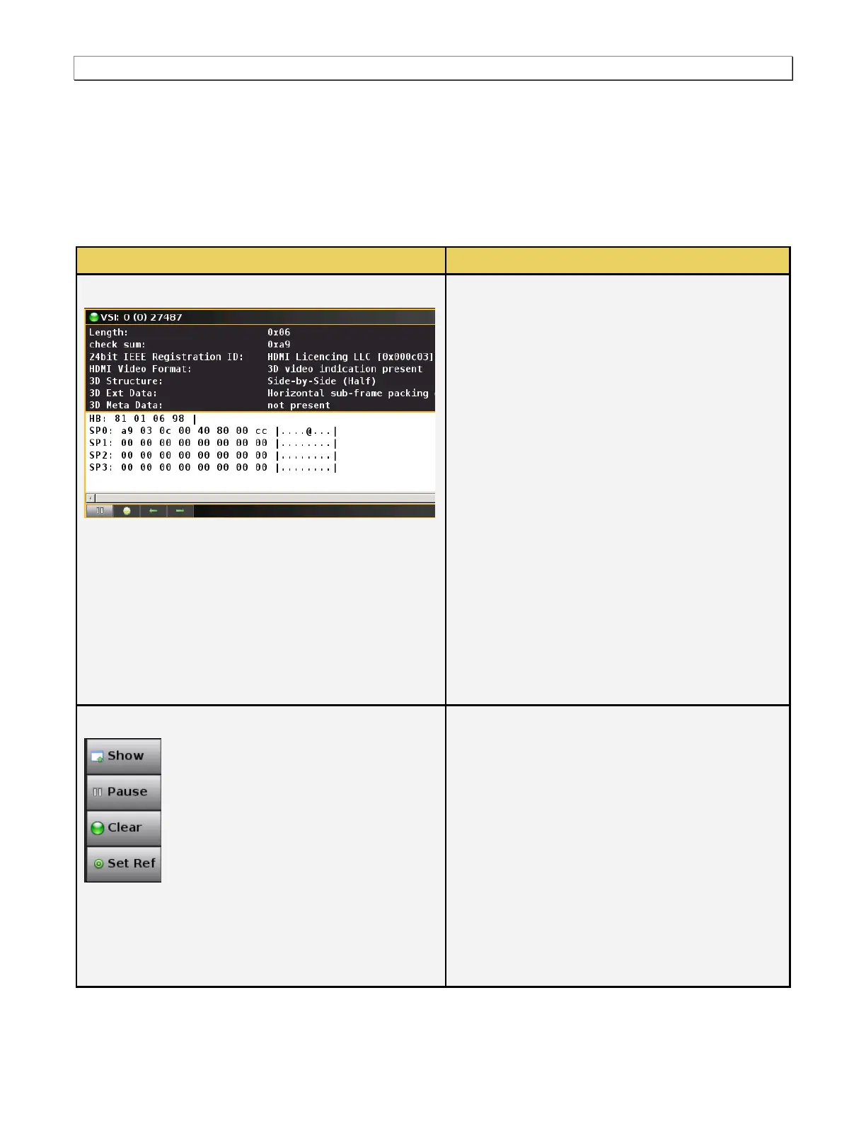 Specific infoframe data. There is a control pull down menu associated with the VS-IF panel. The control menu can