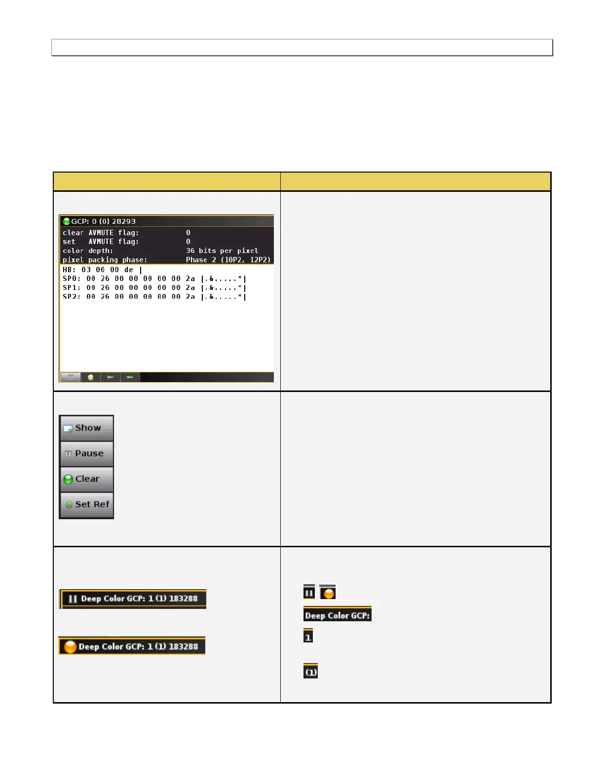 view the General Control Packet data. There is a control pull down menu associated with the GCP panel. The